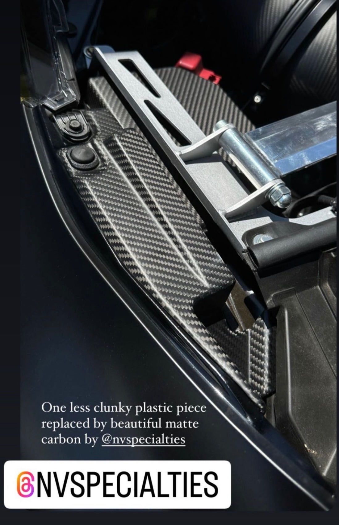 Made from high quality 3k Carbon Fiber, with UV coating protection. This particular piece is available in high gloss finish, matte, and forged options.