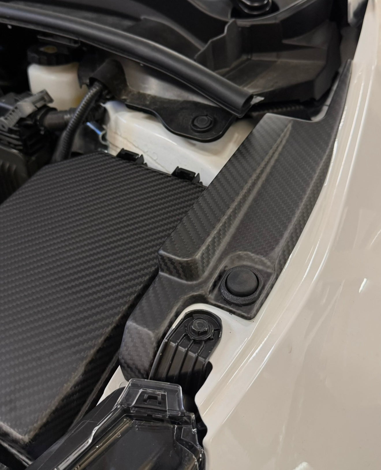 These pieces compliment the engine bay of your GR Corolla as soon as you pop the hood. It is also a great addition to our popular GR Corolla radiator cover, engine cover, and fuse box cover.